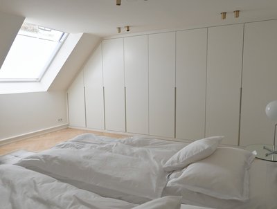 Unsere Konzepte lassen neben der Form die Funktion nicht außer Acht: Wo vor wenigen Jahrzehnten im Winter eisige Kälte und im Sommer brütende Hitze herrschte, ermöglichen heute neuartige Dämmungen einen erholsamen Schlaf. Multifunktionale Schlafzimmermöbel gewinnen jeder Ecke und Schräge einen Vorteil ab. Kein Luxus, sondern eine praktische Lösung sind heute begehbare Schränke: Selbst auf engsten Raum können eigenständige Ankleidezimmer entstehen.